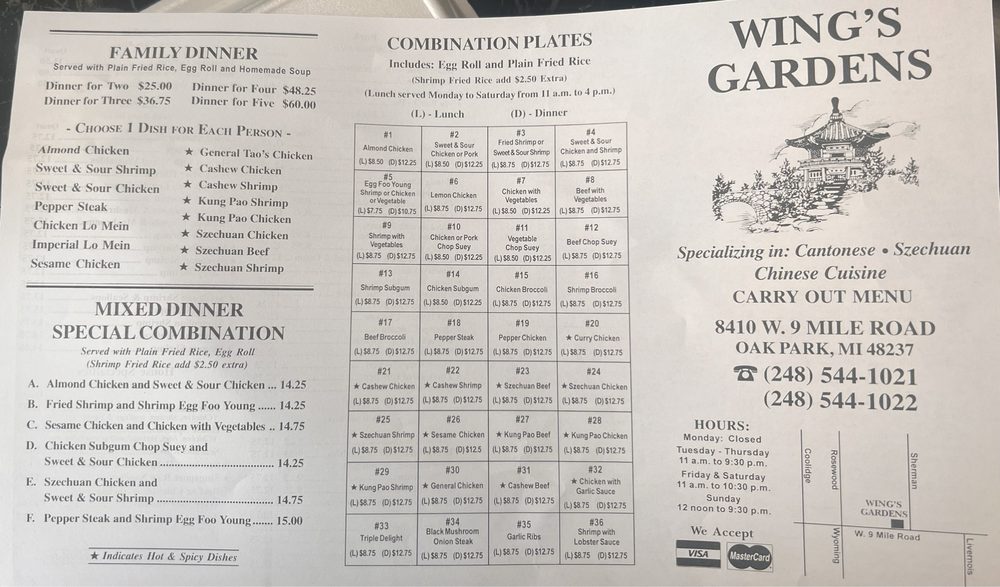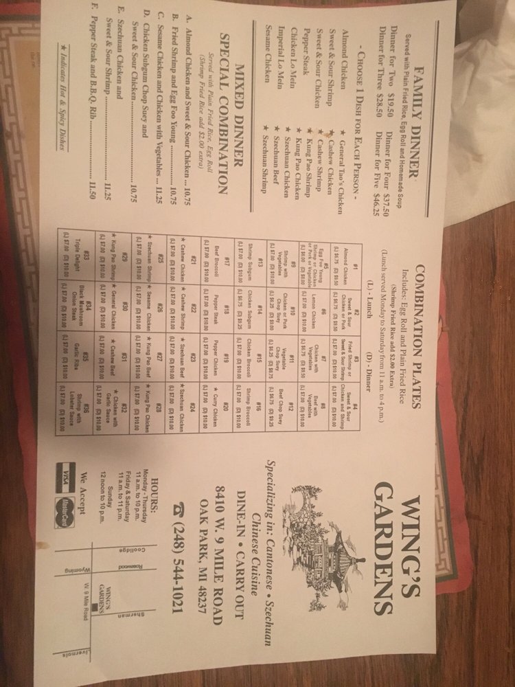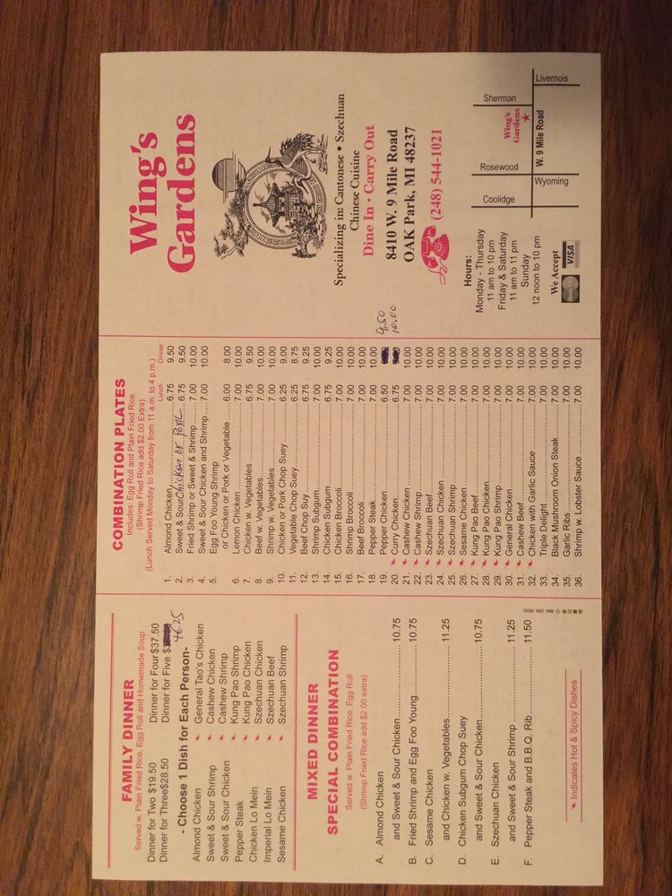 If you're in the mood for Chinese takeout, Wing's Gardens in Oak Park, MI, is a must-try. With a diverse menu catering to various tastes and preferences, their consistently delicious dishes are a standout. The generous portion sizes and well-balanced flavors make for a satisfying dining experience. Customers rave about favorites like General Tso's chicken and almond chicken, showing the restaurant's dedication to quality and traditional flavors. While the ambiance may not be top-notch, the focus on the food speaks volumes. Whether it's the old-school hot and sour soup or the authentic mu shu pancakes, Wing's Gardens delivers on tasty, classic Chinese dishes. Don't miss out on this gem for your next Chinese food craving.